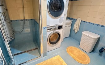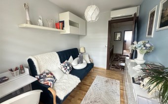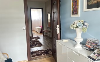 W pokojach i przedpokoju wysokiej klasy parkiet. W łazienkach i kuchni gres.