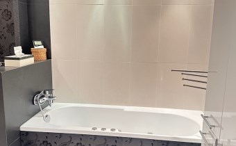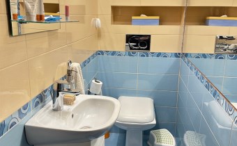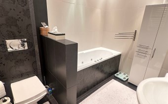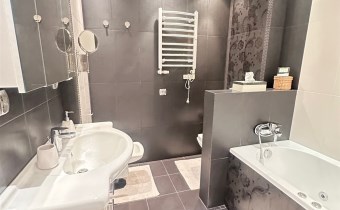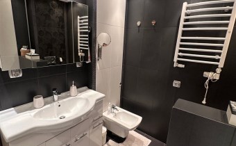 Łazienka z WC (5,70 m²) – wyposażona w wannę, bidet, umywalkę.