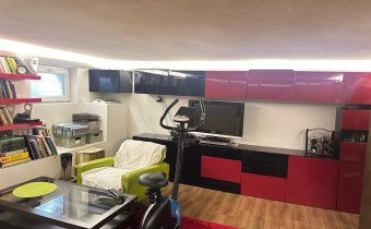 Pokój „klubowy” (26 m²)   z zabudowanymi szafami, biblioteką i kinem domowym