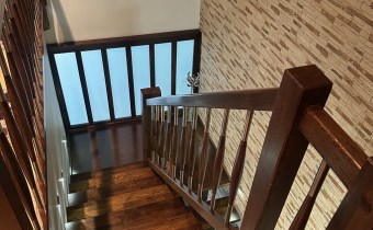 Schody drewniane dębowe w kolorze – ciemny orzech.