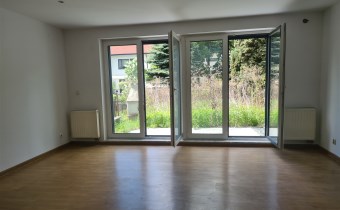 Tynki - gładzie, okna z tworzyw PVC, drzwi z płyty MDF. Z salonu prowadzi wyjście na patio.