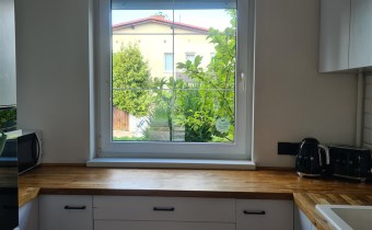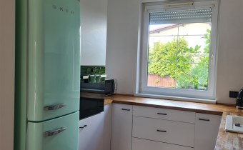 - kuchnia (pełne wyposażenie: płyta indukcyjna, piekarnik, lodówka, okap, zmywarka),,