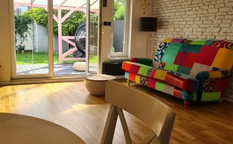 - salon z jadalnią i aneksem kuchennym i wyjściem na taras,