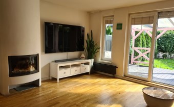 Ogrzewanie podłogowe znajduje się w całym domu. Dodatkowo ogrzewanie kominkiem gwarantuje niskie opłaty za ogrzewanie w sezonie zimowo-jesiennym.