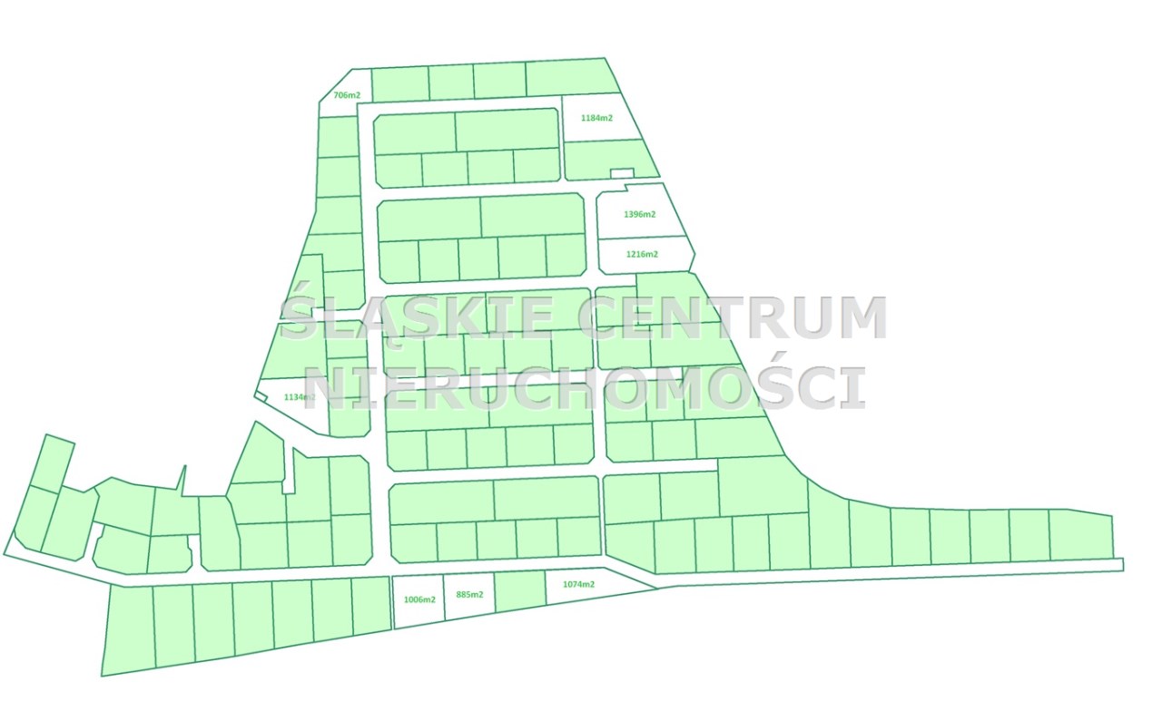 1184 m². Możliwość kupienia kilku działek położonych obok siebie. Dojazd do osiedla stanowi droga publiczna.