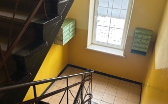 Mieszkanie na I piętrze budynku. Wejście z wewnętrznego korytarza w którym znajduje się pomieszczenie -składzik