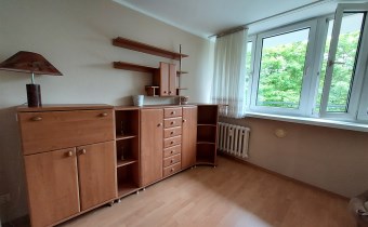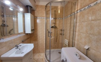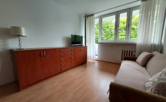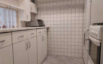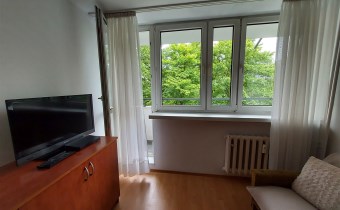 Rozkład pomieszczeń i wyposażenie Mieszkanie o powierzchni 37 m2 składa się z pokoju dziennego z jadalnią, sypialni, kuchni, przedpokoju, oraz łazienki z WC. Pokój dzienny z balkonem skierowanym na południe wyposażony w wygodną kanapę, dużą komodę, TV oraz stół z krzesłami. Kuchnia umeblowana i wyposażona w sprzęty AGD, lodówko zamrażarkę, kuchenkę gazowo-elektryczną, zlewozmywak. Sypialnia (południowa ekspozycja okien) umeblowanie to szafa, meblościanka oraz fotel. Przedpokój prostokątny, wygodny, zapewniający odrębne wejście do każdego z pokoi. Wyposażenie to obszerna szafa garderobiana, zabudowane szafki na buty oraz wieszak, lustro i ławka. Łazienka wyposażenie – kabina prysznicowa, umywalka z szafką, piec gazowy Junkers, pralka automatyczna, WC. Pomieszczenia towarzyszące Suszarnia obok mieszkania, czyste i bardzo przydatne pomieszczenie. Piwnica Dość duża, ustawna