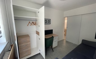Przytulna z balkonem, starannie wyposażona (ok. 10m2) – wygodna kanapa, biurko, designerski fotel, szafa z komoda na bieliznę,