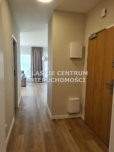 Przestronna klatka schodowa z windą prowadzi do apartamentu o powierzchni 72 m² położonego na 9 piętrze apartamentowca, z tarasem o pow. 74 m2, z którego roztacza się piękny widok na panoramę Katowic.
