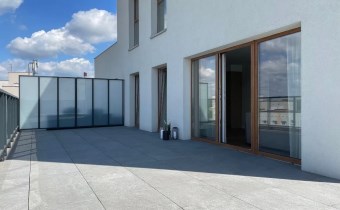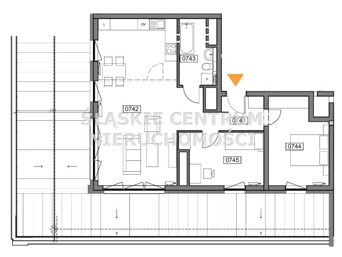 Przestronna klatka schodowa z windą prowadzi do apartamentu o powierzchni 72 m² położonego na 9 piętrze apartamentowca, z tarasem o pow. 74 m2, z którego roztacza się piękny widok na panoramę Katowic.